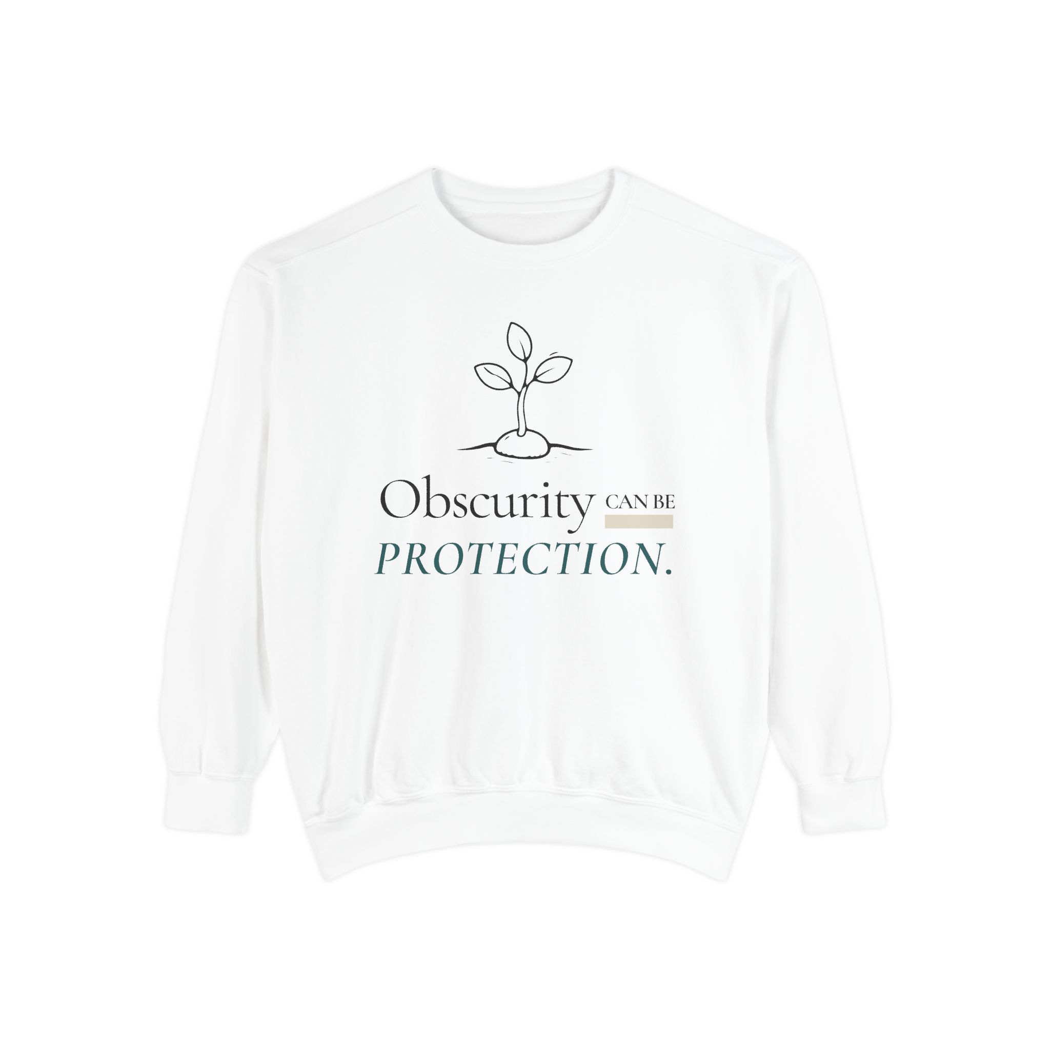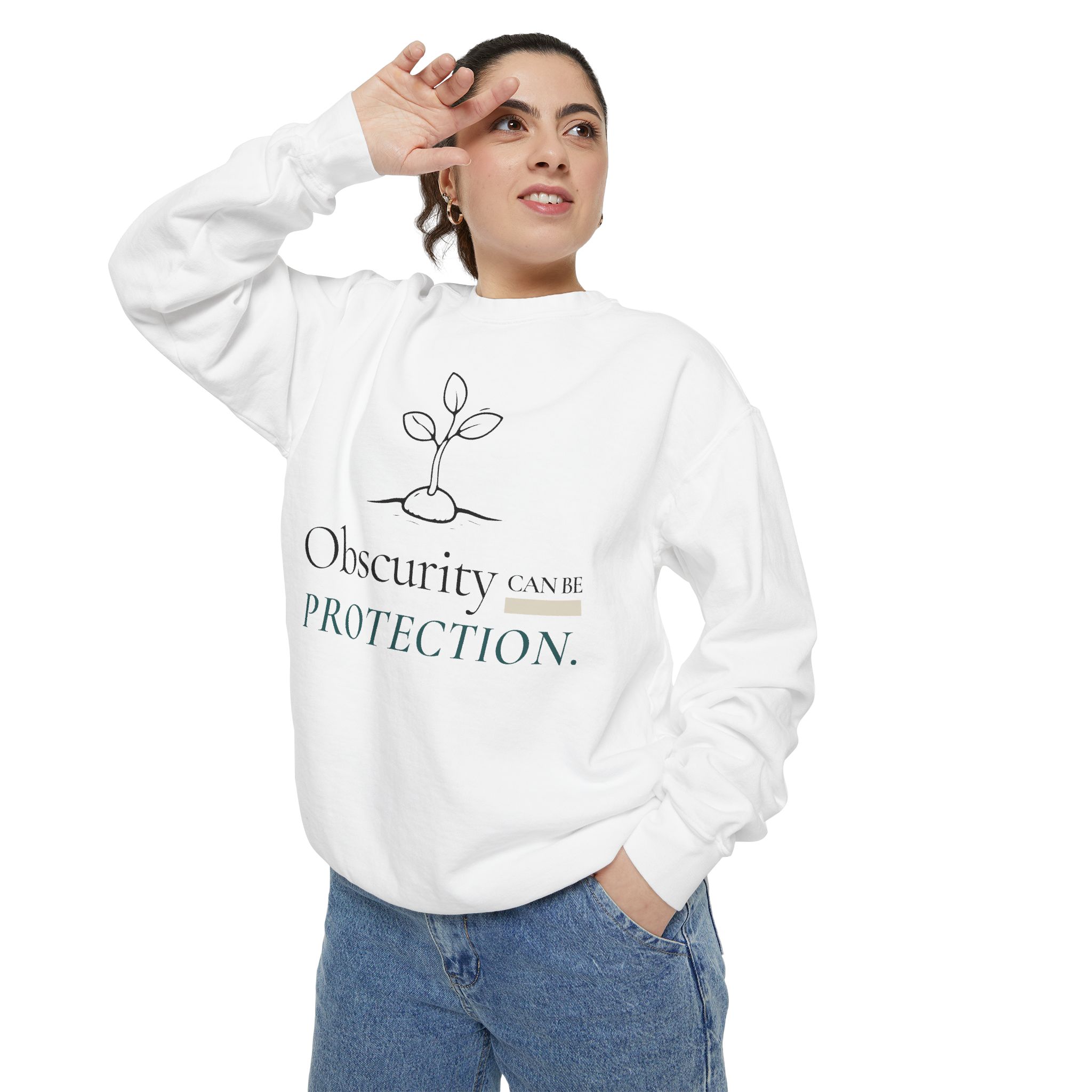 A softly worn sweatshirt that reads like a quiet declaration. Lightweight yet substantial, its relaxed silhouette and medium-heavy knit wrap you in a gentle, grounding warmth — the kind that lets you move through a busy day without announcing yourself. A small, delicate sprout illustration sits above the text, whispering growth and guarded calm. The typography pairs an understated serif with subtle emphasis, giving the piece a literary, contemplative voice. Wear it while running errands, curled up with a book, or during late-night conversations where subtlety matters more than volume. The garment-dyed finish and low-impact OEKO-TEX dyes give the fabric a lived-in look and a soft hand that only improves with time.